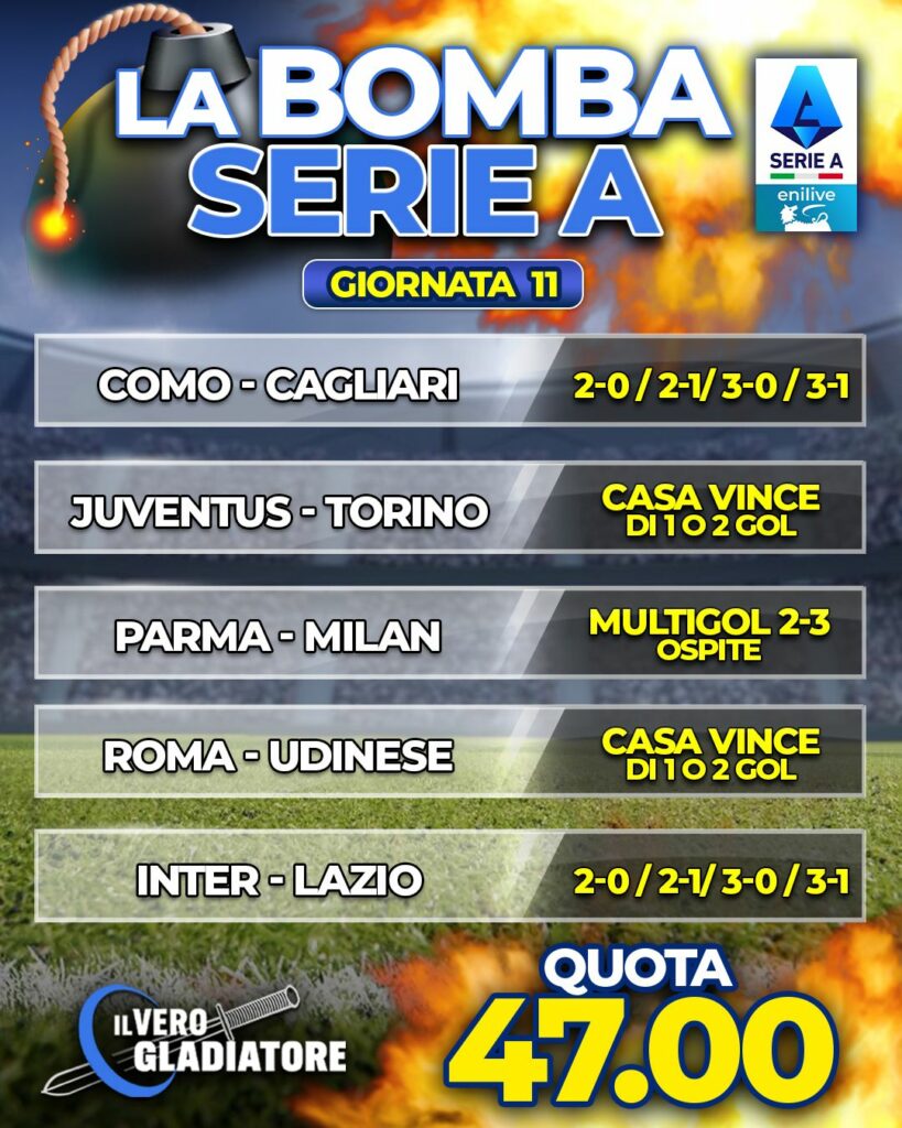 Ecco la Mia Bomba Serie A per questa 11° Giornata di Campionato (2025/26), Quota 47