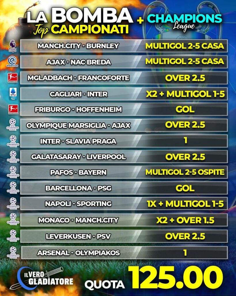 Ecco la Mia Bomba Long Time Campionati + Champions ,Quota 125