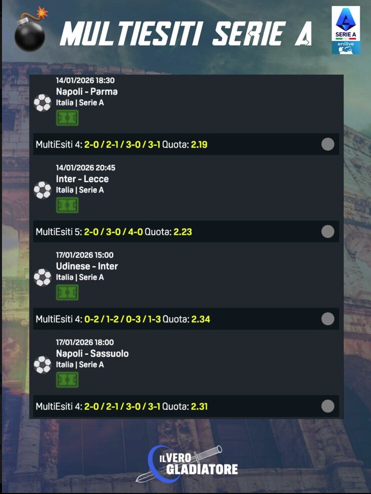 Ecco La Multiesiti Serie A, 14/17 Gennaio 2026 Quota 26