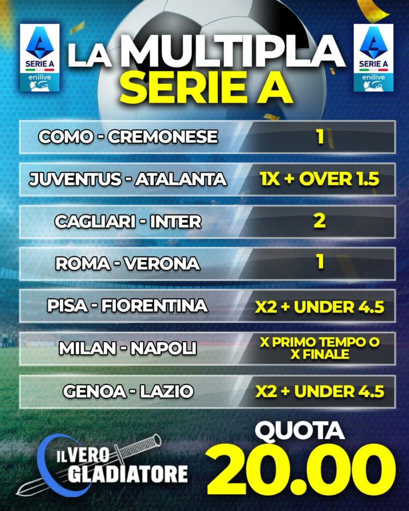 Ecco la mia Multipla Serie A Quota 20 per questa 5° Giornata di Campionato 2025/2026