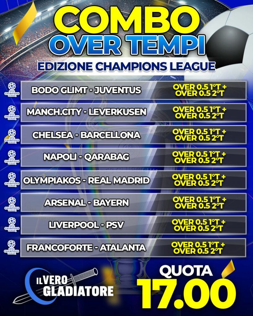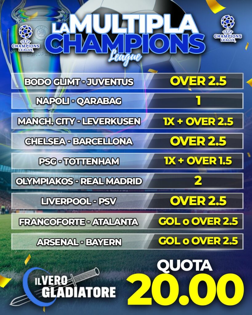 Di seguito le mie proposte per questa giornata di fase a girone unico di Champions League.