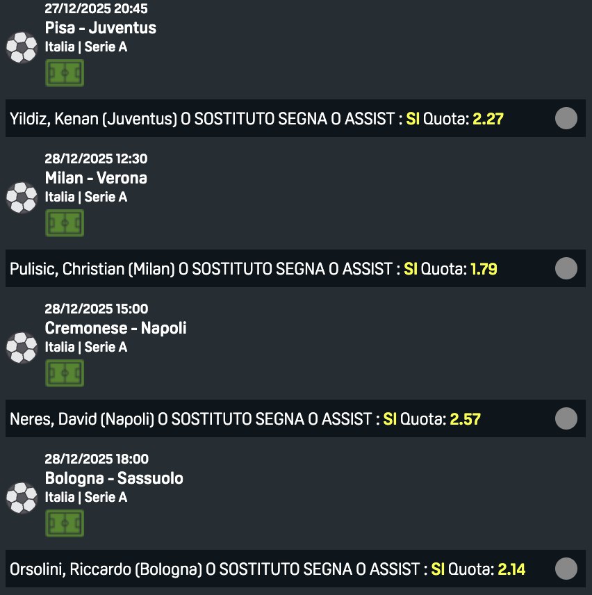 SEGNA O ASSIST SERIE A Q.22 2025/2026