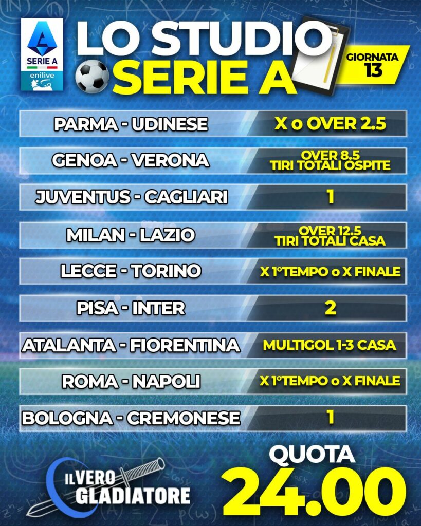 Ecco il Mio Studio Serie A per questa 13° Giornata di Campionato (2025/26) , Quota 24