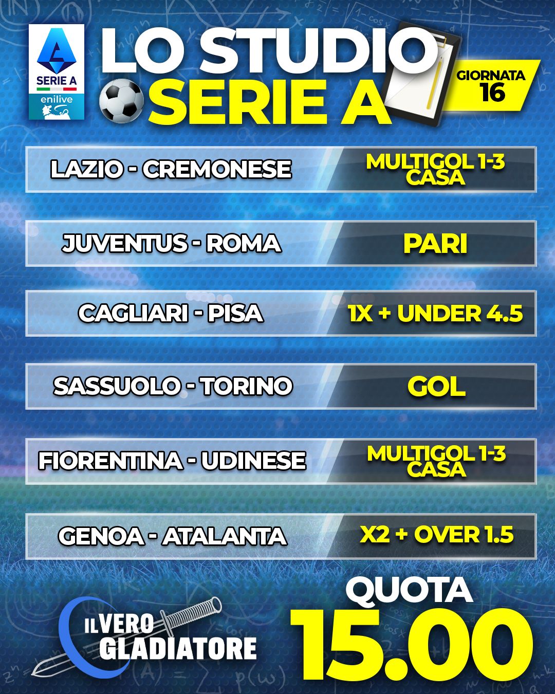 Ecco il Mio Studio Serie A per questa 16° Giornata di Campionato (2025/26) , Quota 15