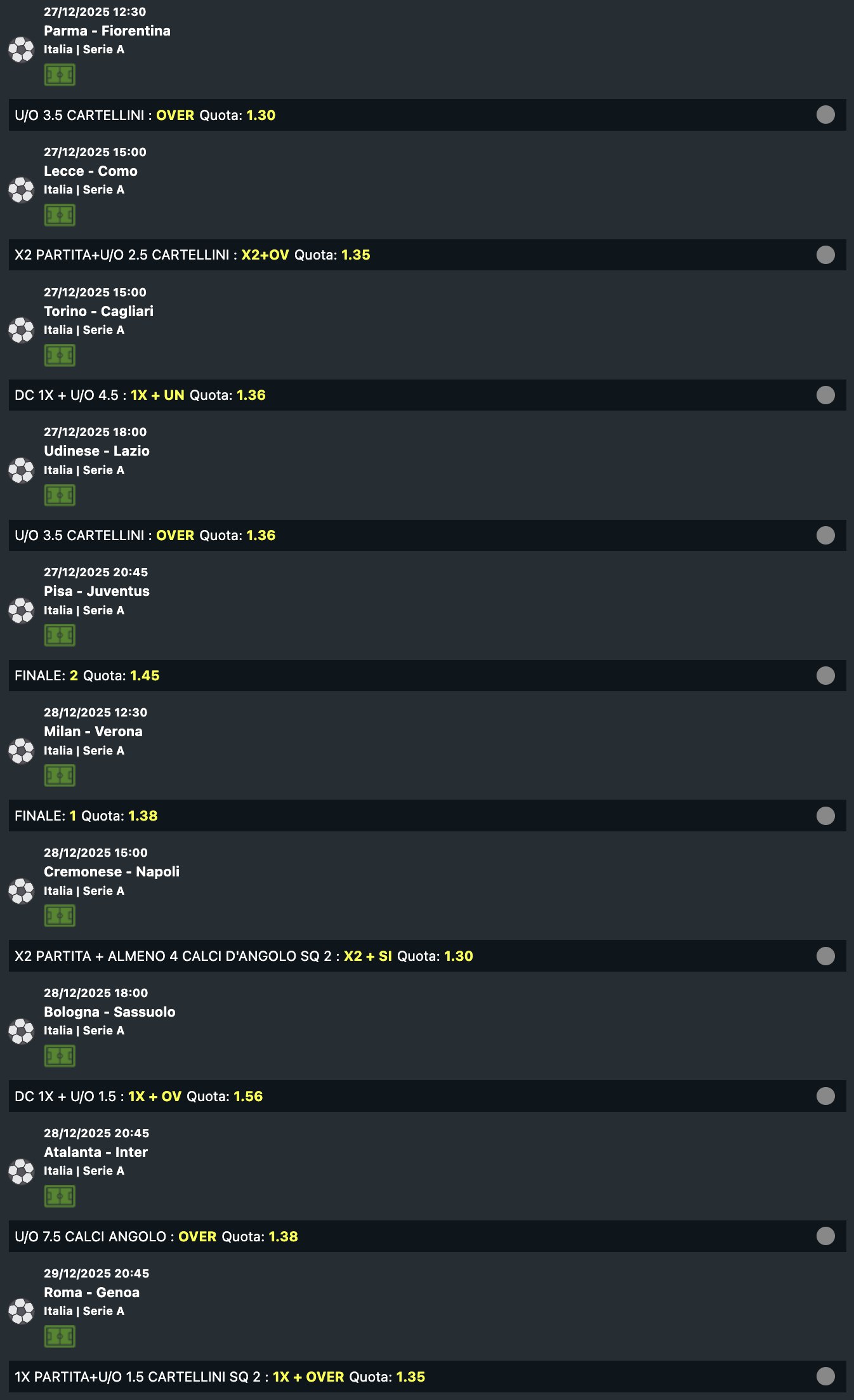 Ecco il Mio Studio Serie A per questa 17° Giornata di Campionato (2025/26) , Quota 30