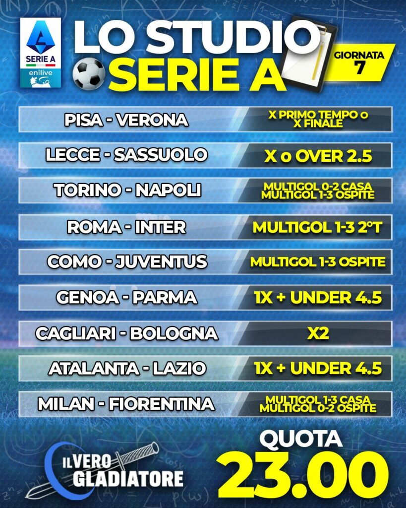 Ecco il mio Studio per la 7° Giornata di Serie A 2025/2026