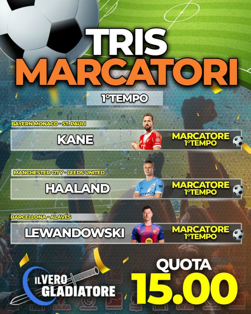 Ecco un Tris Marcatori 1Tempo. Serie A della 13 Giornata che moltiplica 15 volte la posta.